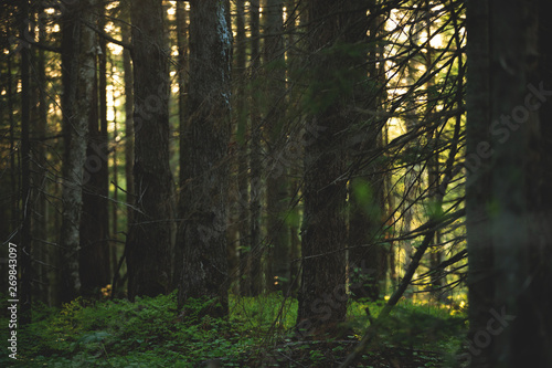© Anastasiia, Fototapeta premium Beautiful mysterious forest at sunset