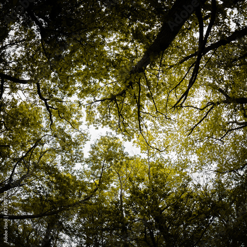 © Barbara C, Fototapeta premium beautiful mysterious forest, bottom view on beech trees and treetop crowns in springtime