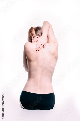 © flying creature, Obraz premium Beautiful naked woman back isolated on white background