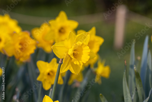 Obraz premium Beautiful narcissus flowers bloom in the spring garden.