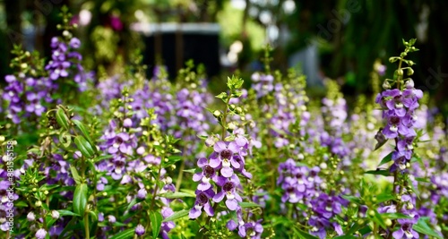 Fototapeta premium Beautiful Narrowleaf Angelon or angelonia angustifolia purple flowers...