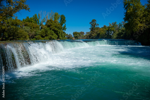 Fototapeta premium Beautiful natural landmark of manavgat waterfall with waterfall lake...