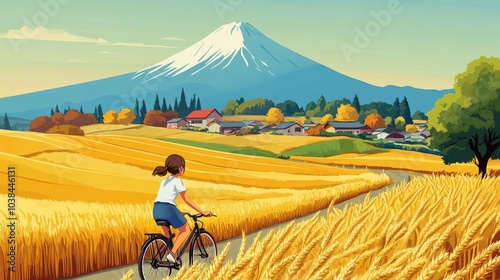 Obraz premium Beautiful natural scenery in autumn in illustration style