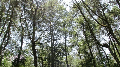 © Andipapatonk, Fototapeta premium beautiful natural scenery on the hill looks high and big trees in the wind