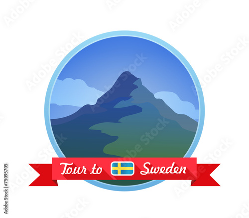 © Morozov Alexey, Naklejka premium Beautiful Nature Landscape in Vector Emblem with Caption