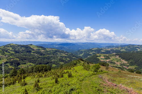 © mitarart, Fototapeta premium Beautiful nature landscape , panoramic view, summer day, fresh air, amazing view, blue sky with clouds, green valley