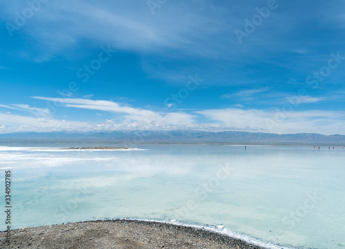 Fototapeta premium Beautiful nature landscape view of Emerald Salt Lake in Qinghai China