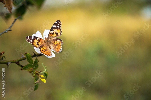 Obraz premium Beautiful nature of colored butterfly on fresh flower.