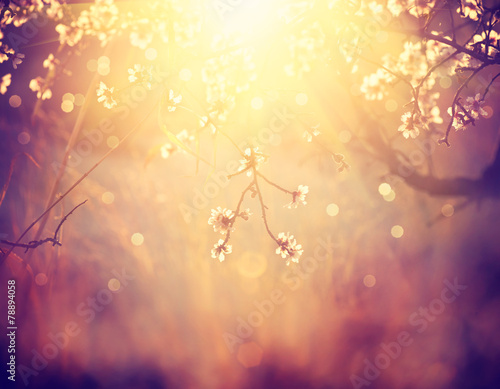 © Subbotina Anna, Fototapeta premium Beautiful nature scene with blooming tree and sun flare