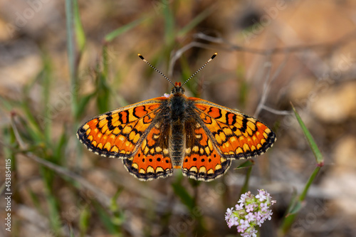 Fototapeta premium Beautiful Nazuğum butterfly on the plant - Euphydryas orientalis