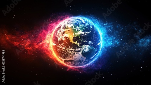 © MochSjamsul, Obraz premium Beautiful neon digital image of the earth