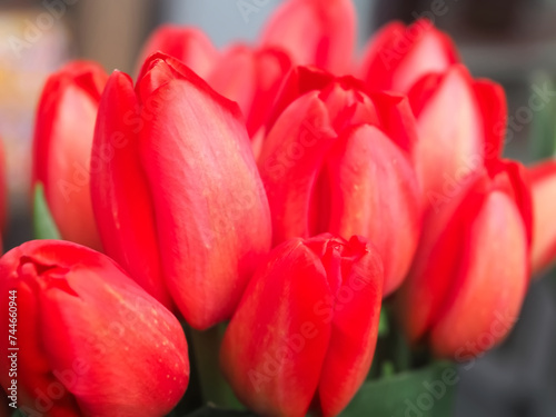 © Stimmungsbilder1, Fototapeta premium Beautiful new bundle of red shining tulips