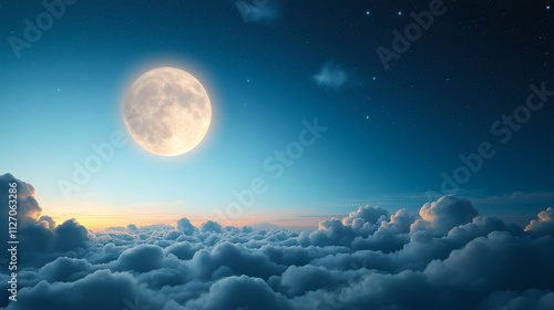 Obraz premium beautiful night sky with full moon shining brightly over fluffy clouds,...
