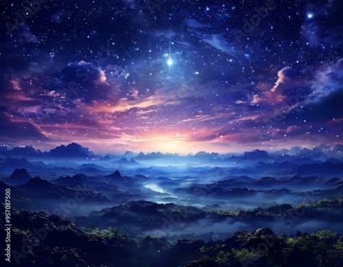 © Nipon, Naklejka premium beautiful night sky with stars and clouds