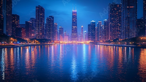 © Iran, Obraz premium Beautiful night view of chicago high resolution image