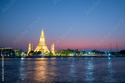 Obraz premium バンコクにあるワット・アルンのとても美しい夜景Beautiful night view of Wat Arun in Bangkok