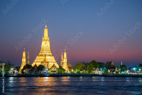 © Raicho, Fototapeta premium バンコクにあるワット・アルンのとても美しい夜景Beautiful night view of Wat Arun in Bangkok