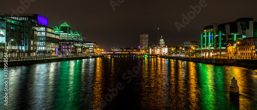 © Cristi, Fototapeta premium Beautiful night view scene Dublin city center old town Ireland cityscape reflection river Liffey long exposure