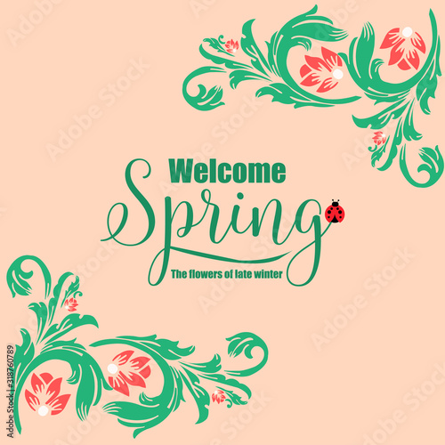 Obraz premium Beautiful of leaf and red floral frame, for unique welcome spring card decoration. Vector