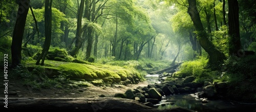 © HN Works, Fototapeta premium Beautiful of Natural Green Forest. Creative banner. Copyspace image