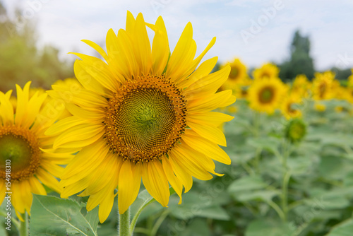 Fototapeta premium beautiful of Sunflower blooming in Sunflowers garden