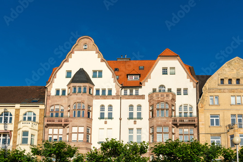 Fototapeta premium Beautiful old residential houses by the Rhein in Düsseldorf