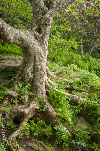 © jadimages, Fototapeta premium Beautiful old tree along the path on the way to Graggy Garden Pinnacle in Asheville, NC, USA near the Great Smoky Mountains National Park.