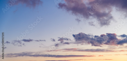 Obraz premium Beautiful orange bright sunset sky with dramatic clouds. Sunset sky background.