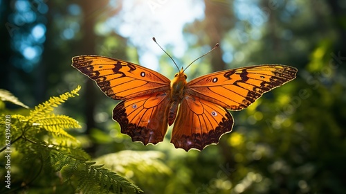 Fototapeta premium Beautiful orange butterfly insect, AI generated image