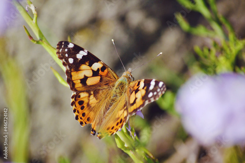 © boryanam, Fototapeta premium Beautiful Orange Butterfly on a Purple Flower