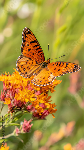© MacAttack Creations, Fototapeta premium beautiful orange butterfly on yellow wildflowers in a meadow