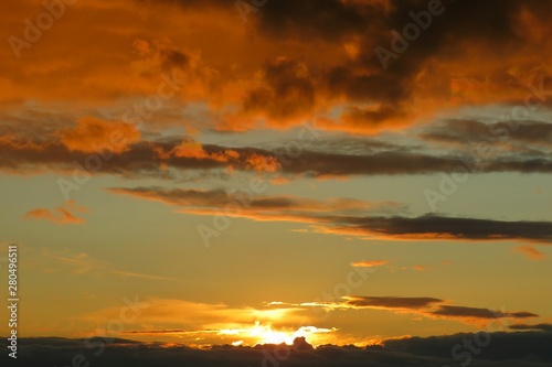 © natalya2015, Obraz premium Beautiful orange golden sunset background over the city