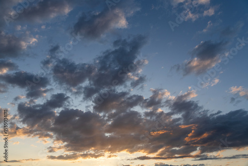 Fototapeta premium Beautiful orange sunset sky, with clouds,. Evening sky background.