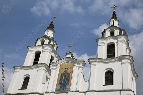 © Sergei, Fototapeta premium Beautiful Orthodox Church, summer, sunlight playing on the Golden dome, on the background of blue sky.