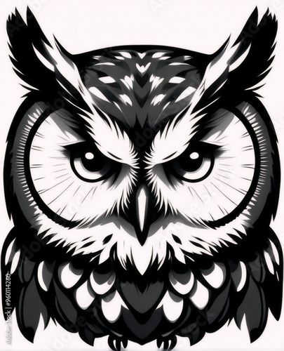© Pal, Obraz premium Beautiful owl silhouette , black and white owl clipart or vector