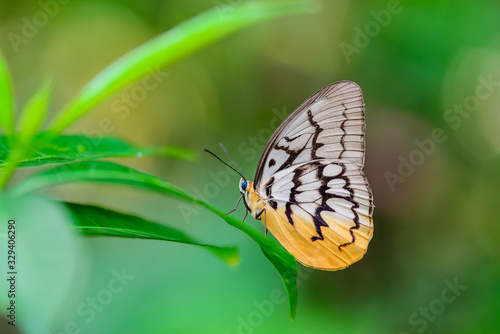 © Apiwan, Obraz premium Beautiful Pallid Faun butterfly perched on leaf in natural