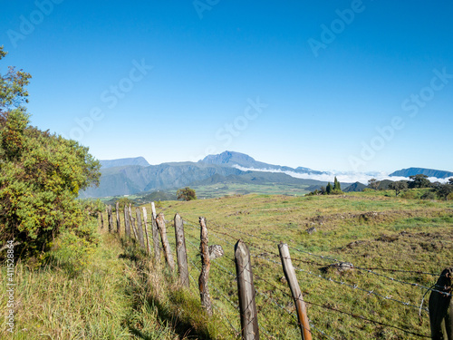 © aylerein, Fototapeta premium Beautiful Panorama of Piton des neiges, highest mountain in Reunion island