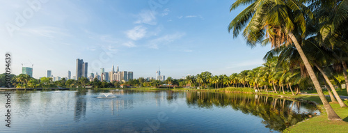 © gracethang, Fototapeta premium Beautiful panorama view of the Kuala Lumpur skyline at Titiwangsa Lake Gardens, Malaysia