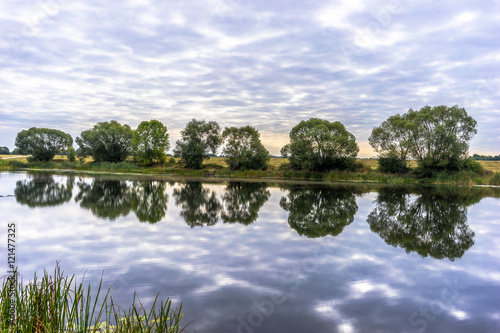 © DZiegler, Fototapeta premium Beautiful panoramic landscape, cloudy sky, trees and water