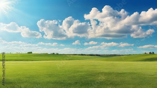 © Shamsuddin, Fototapeta premium Beautiful Panoramic Landscape of a Green Grass Meadow. Made with Generative AI Technology