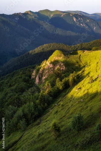 © Petar, Naklejka premium Beautiful panoramic mountain landscape at sunset