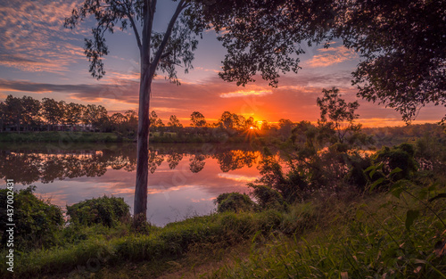 © Kevin, Obraz premium Beautiful Panoramic Riverside Sunset with Cloud Reflections
