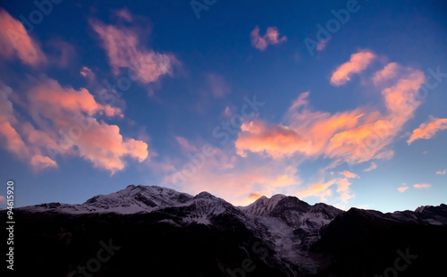 Fototapeta premium beautiful panoramic view of Himalaya mountains at sunset