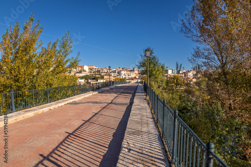 © Paulo, Fototapeta premium Beautiful panoramic view of Zamora roman bridge called Puente de Piedra, during Autumn season, on the Douro River, in Spain.