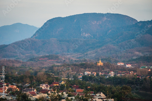 Obraz premium Beautiful panoramic view over Luang Prabang from Phousi Hill at sunset in Laos