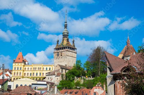 Fototapeta premium Beautiful panoramic view over traditional architecture of Sighisoara citadel...