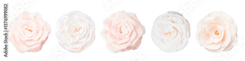 © New Africa, Obraz premium Beautiful paper flowers on white background, set. Top view