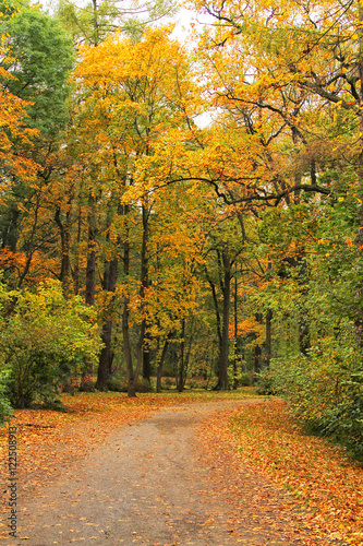 © sergeialyoshin, Naklejka premium beautiful park at sunrise in autumn time. Nature background