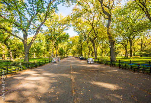 Naklejka premium Beautiful park in beautiful city..Central Park. The Mall area in Central Park at autumn., New York City, USA