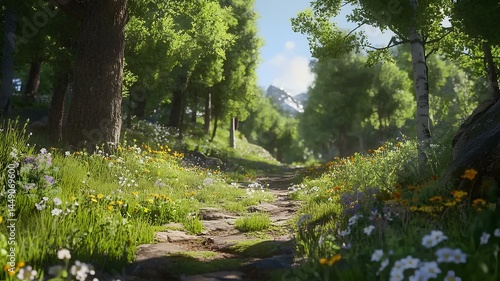 © Didah, Obraz premium Beautiful park with lush trees and green land